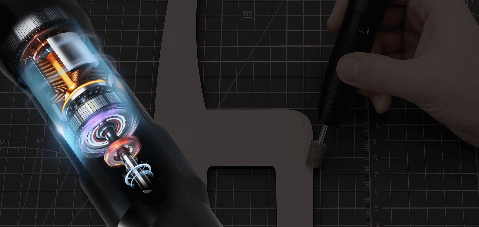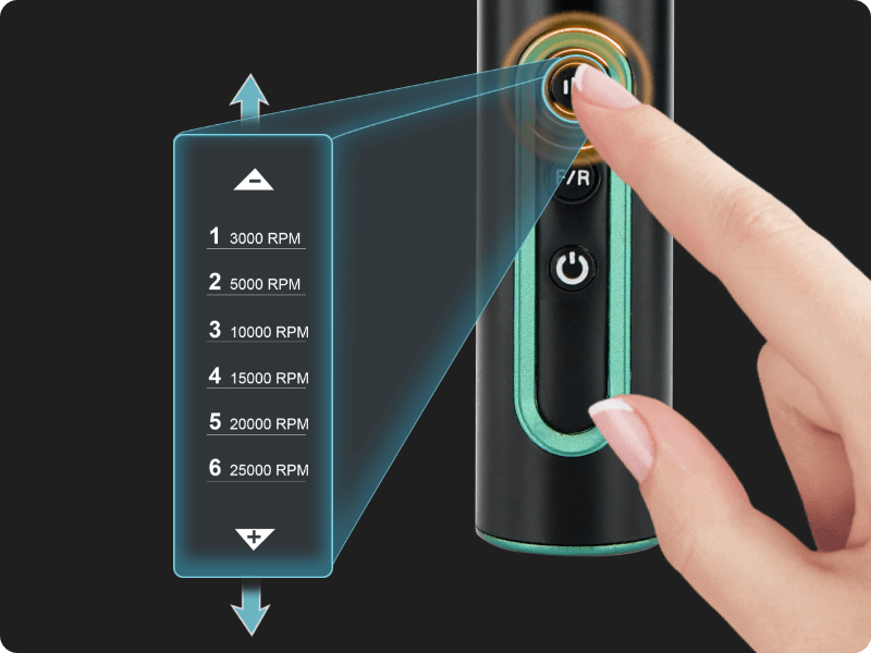 Our Hanboost® S2 boasts a twist-lock chuck for effortless bit changes, six speed settings up to 30,000 RPM, and a robust anodized aluminum shell for comfort and durability.